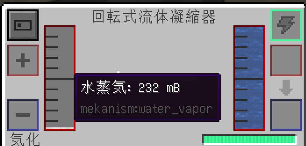次は水を水蒸気にしてみましょう。「回転式流体凝縮器」を使います。