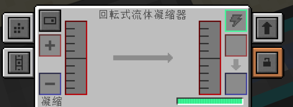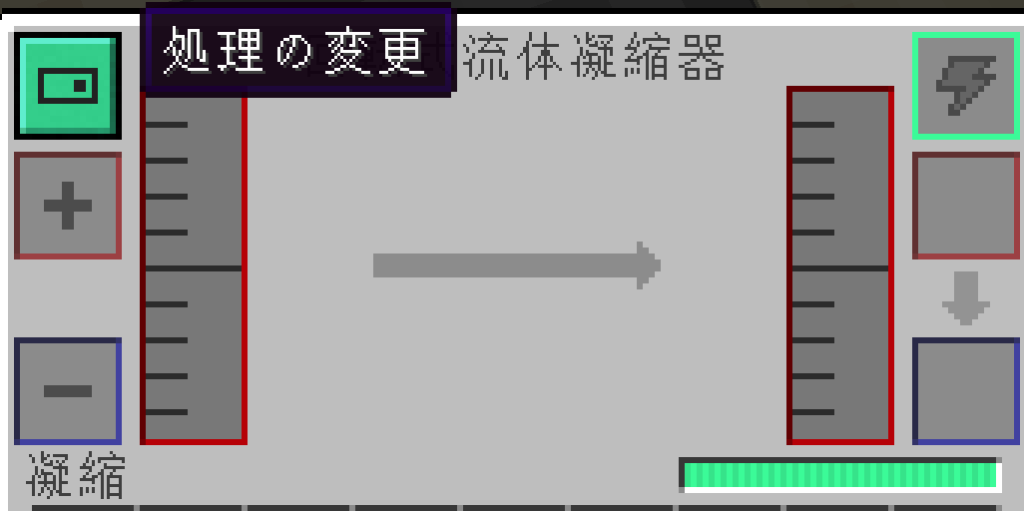 左下を見てみると、「凝縮」と書いてあるのがわかります。凝縮は気体→液体の状態変化のことですね。上のトグルボタン(□▪みたいなやつ)を押してみましょう。